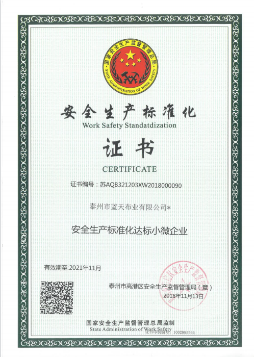 安全生產標準化證書